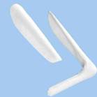 看上圖便知,原本傳統的鼻模都是做成L形的,分別代表著鼻樑,鼻頭和鼻柱三個部份,因此傳統隆鼻時只要將L形鼻模想辦法塞進去就行了,缺點是L形鼻模在鼻頭的作用力極大,一旦遇到鼻子皮膚的張力也大的時候(短鼻、塌鼻),常常會有鼻模自鼻頭皮膚穿出的危險,因此久而久之,成為一個隆鼻併發症的代名詞,只要有稍微詢問過隆鼻的人就知道,通通聞L形鼻模而色變。而這其中又以L形矽膠鼻模的使用率為最高,因此大家都普遍認為放L形矽膠鼻模就是不好!